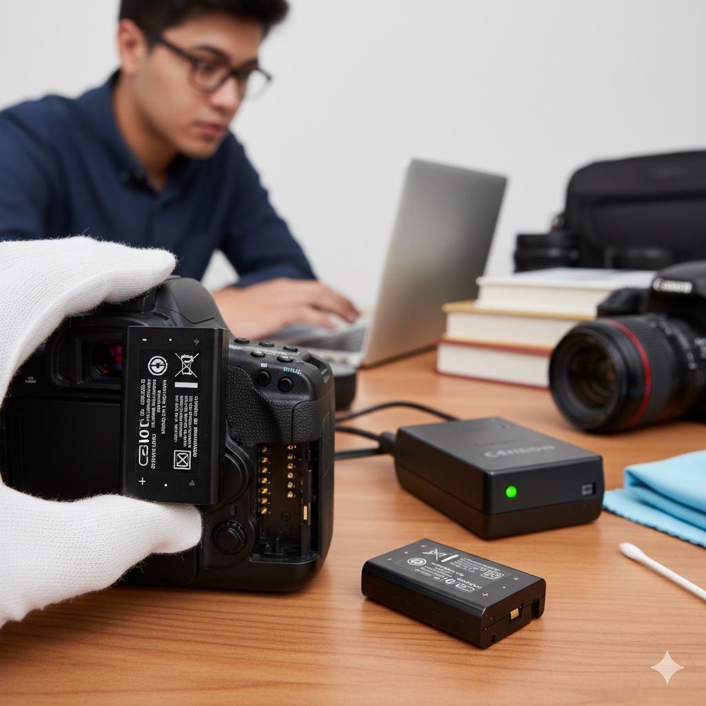 یکی از شایعترین دلایل روشن نشدن دوربین کانن، باتری ضعیف یا معیوب است. دانشجویان معمولاً ساعتهای طولانی در کلاسهای عملی یا پروژههای میدانی از دوربین استفاده میکنند و گاهی فراموش میکنند باتری را بهدرستی شارژ کنند.