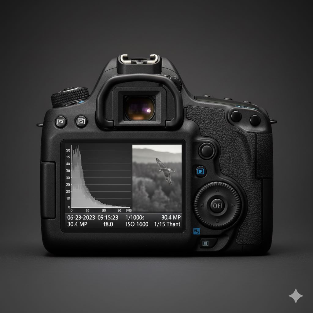 نمایشگر LCD: برای بررسی تصاویر ثبت شده، منوها و تنظیمات دوربین استفاده میشود.