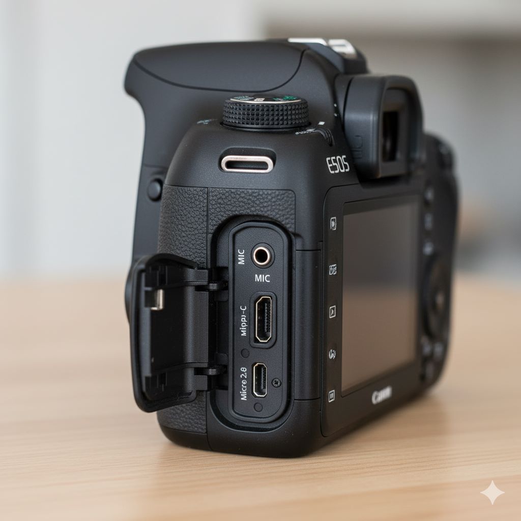 هر یک از پورتهای دوربین کانن 250D کاربرد ویژهای دارند: